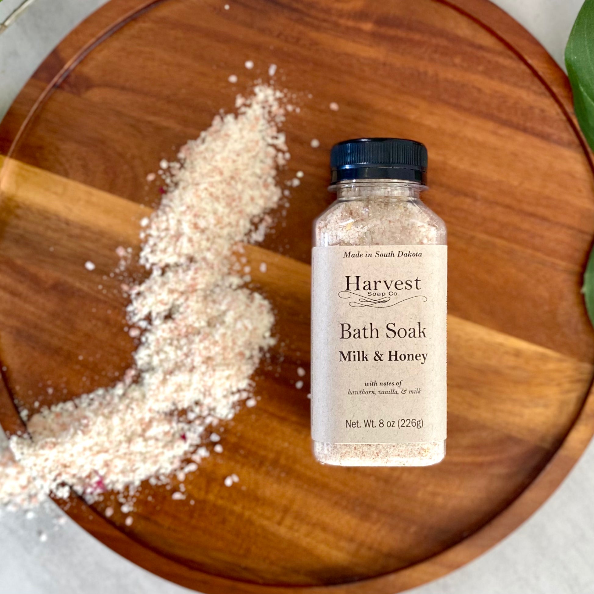 Soak in a bath of warm milk and soothing honey with this relaxing milk bath soak.